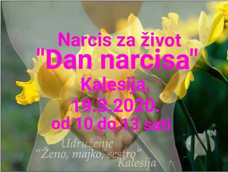 “Dan narcisa” obilježit će se u Kalesiji, u organizaciji udruženja koje okuplja žene izliječene i oboljele od raka “Ženo, majko, sestro”. Manifestacija će biti upriličena 19. marta 2020. godine, od 10:00 do 13:00 sati, na platou ispred BKC “Alija Izetbegović” Kalesija.