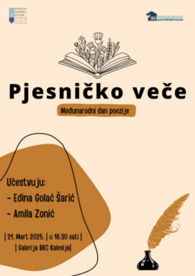 U BKC “Alija Izetbegović” Kalesija organiuje Pjesničko veče povodom Međunarodnog dana poezije.