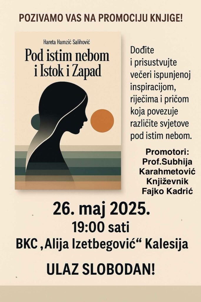 U vremenu kada su glasovi žena u književnosti sve snažniji, roman “Pod istim nebom – Istok i Zapad” autorice Hazete Hamzić Salihović izdvaja se kao intimna, istinita i duboko emocionalna priča koja kroz žensku sudbinu osvjetljava univerzalne istine o ratu, izbjeglištvu, ljubavi i opstanku.