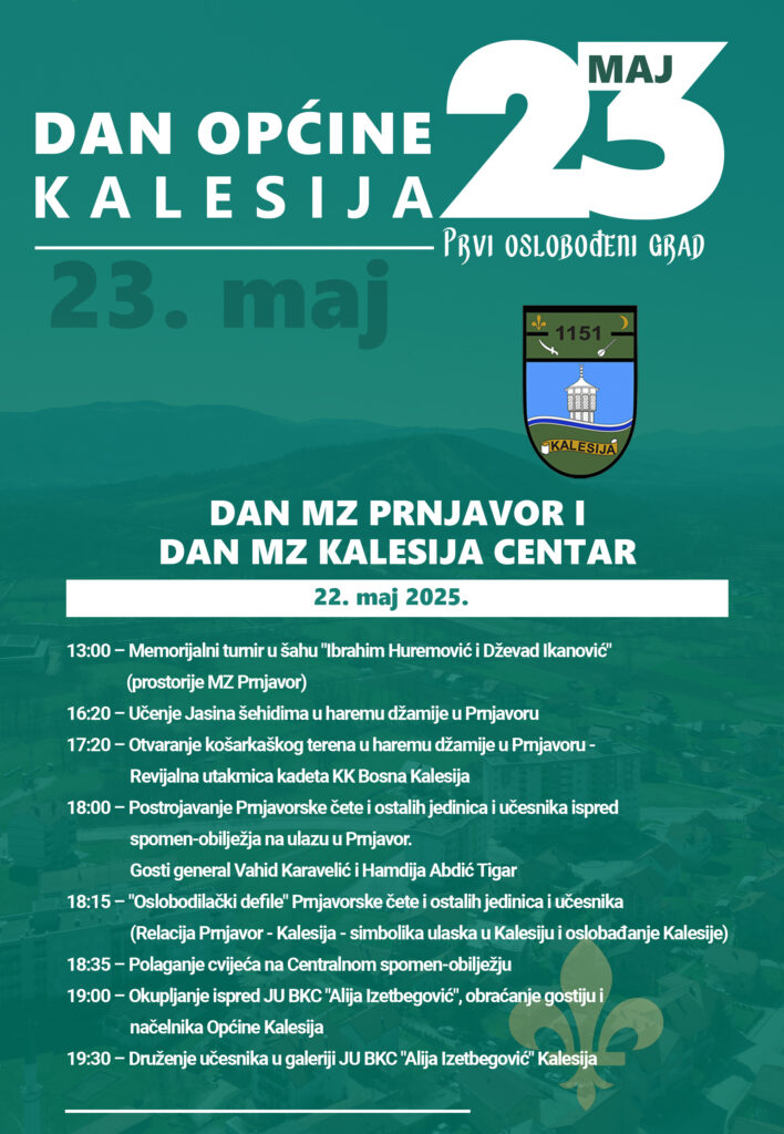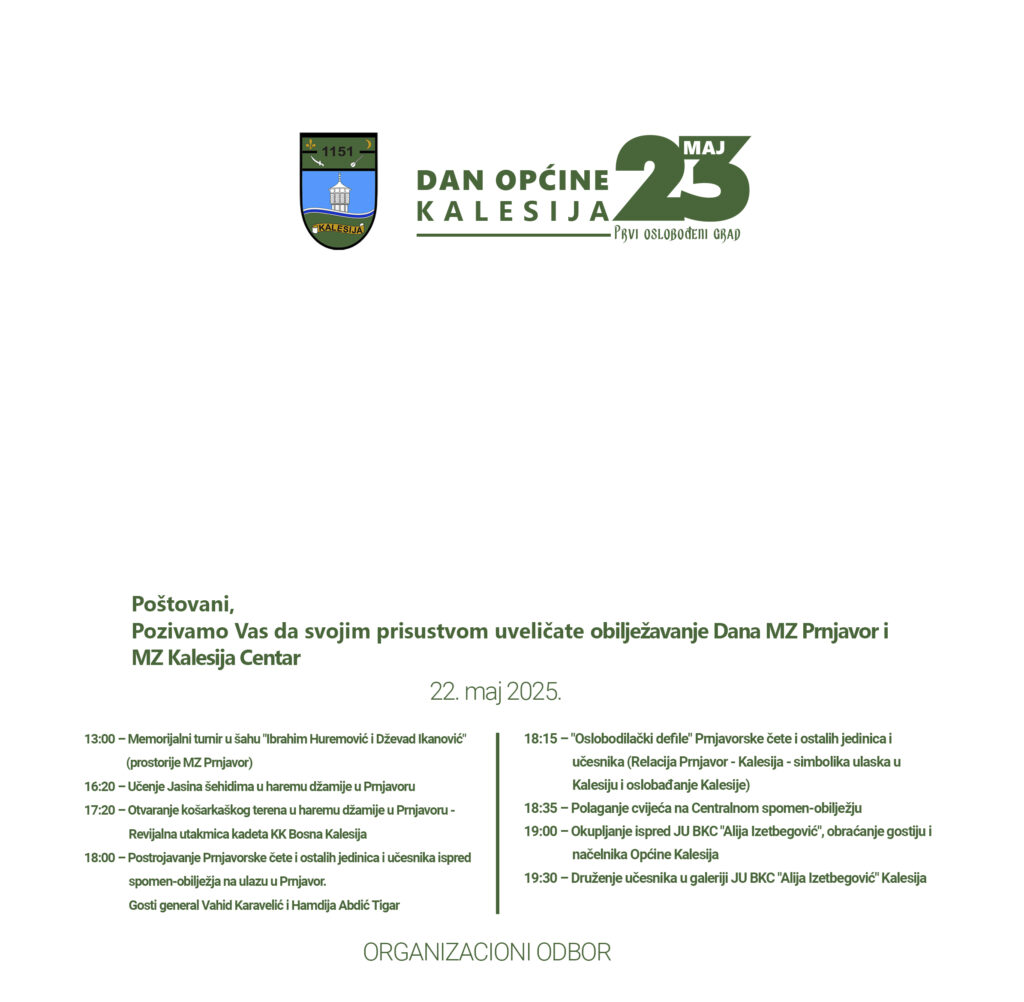 U okviru obilježavanja Dana općine Kalesija, bit će upriličene aktivnosti povodom obilježavanja Dana MZ Prnjavor i MZ Kalesija Centar .