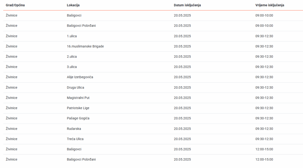 U pojedinim dijelovima Živinica danas će doći do privremene obustave isporuke električne energije. Prekidi u isporuci električne energije najavljeni su u periodima od 9:00 do 10:00, 9:30 do 12:30 i 12:00 do 15:00 sati.