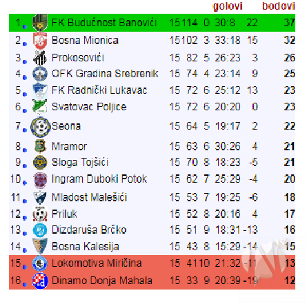 FK “Bosna” Kalesija takmiči se u Drugoj ligi FBiH grupa Sjever. U prvom dijelu sezone, kalesijski klub zauzeo je 14 mjesto sa ukupno 15 osvojenih bodova.