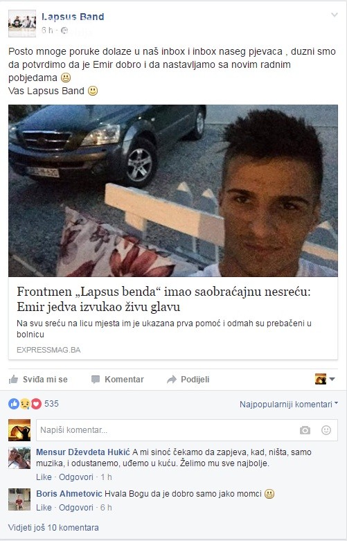 Frontmen „Lapsus benda“ Emir Aličković na putu iz naše prijestolnice ka rodnom Kaknju imao je stravičan udes.