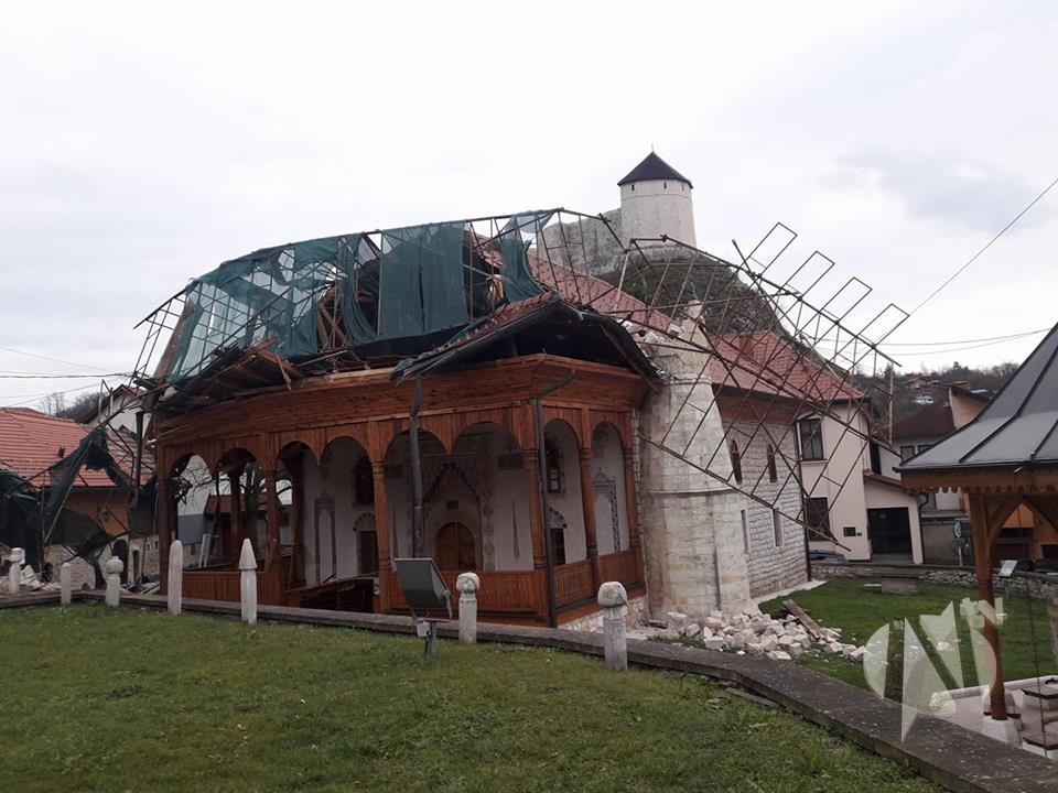 Snažan olujni vjetar srušio je u noći s ponedjeljka na utorak munaru Čaršijske ili Ferhad-begove džamije u Tešnju.