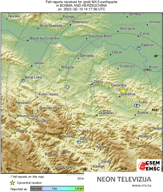Zemljotres se osjetio u Zenici i u Srebreniku.