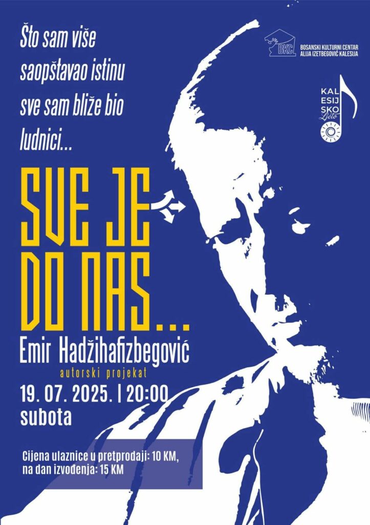 U okviru manifestacije “Kalesijsko ljeto” večeras će sa početkom u 20 sati, velikan bh. glumlišta Emir Hadžihafizbegović izvesti svoju monodramu „Sve je do nas“.