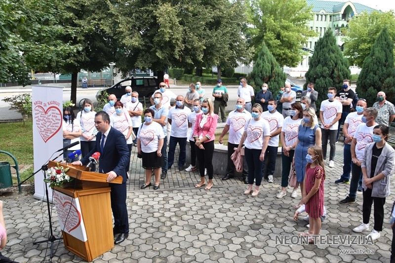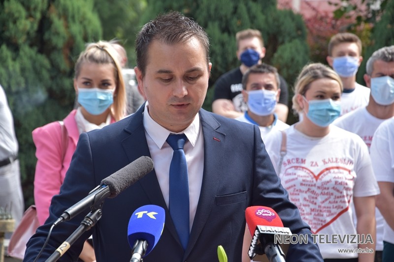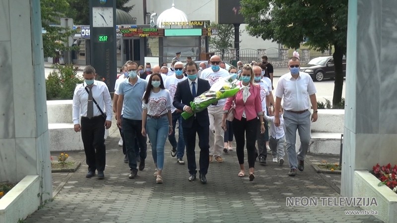 Neposredno pred početak press konferencije dr. Selimović je sa okupljenim građanima položio cvijeće na Šehidsko spomen obilježje u Kalesiji.