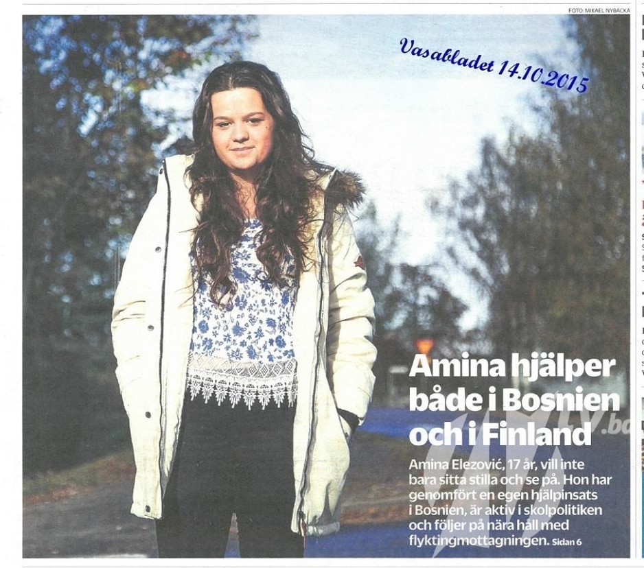 Amina Elezović (17), učenica porijeklom iz Bosne i Hercegovine, koja sa porodicom već nekoliko godina živi u Finskoj, pojavila se na naslovnicama finskih novina nakon što je izabrana za “Omladinca 2014. godine Općine Malax”.