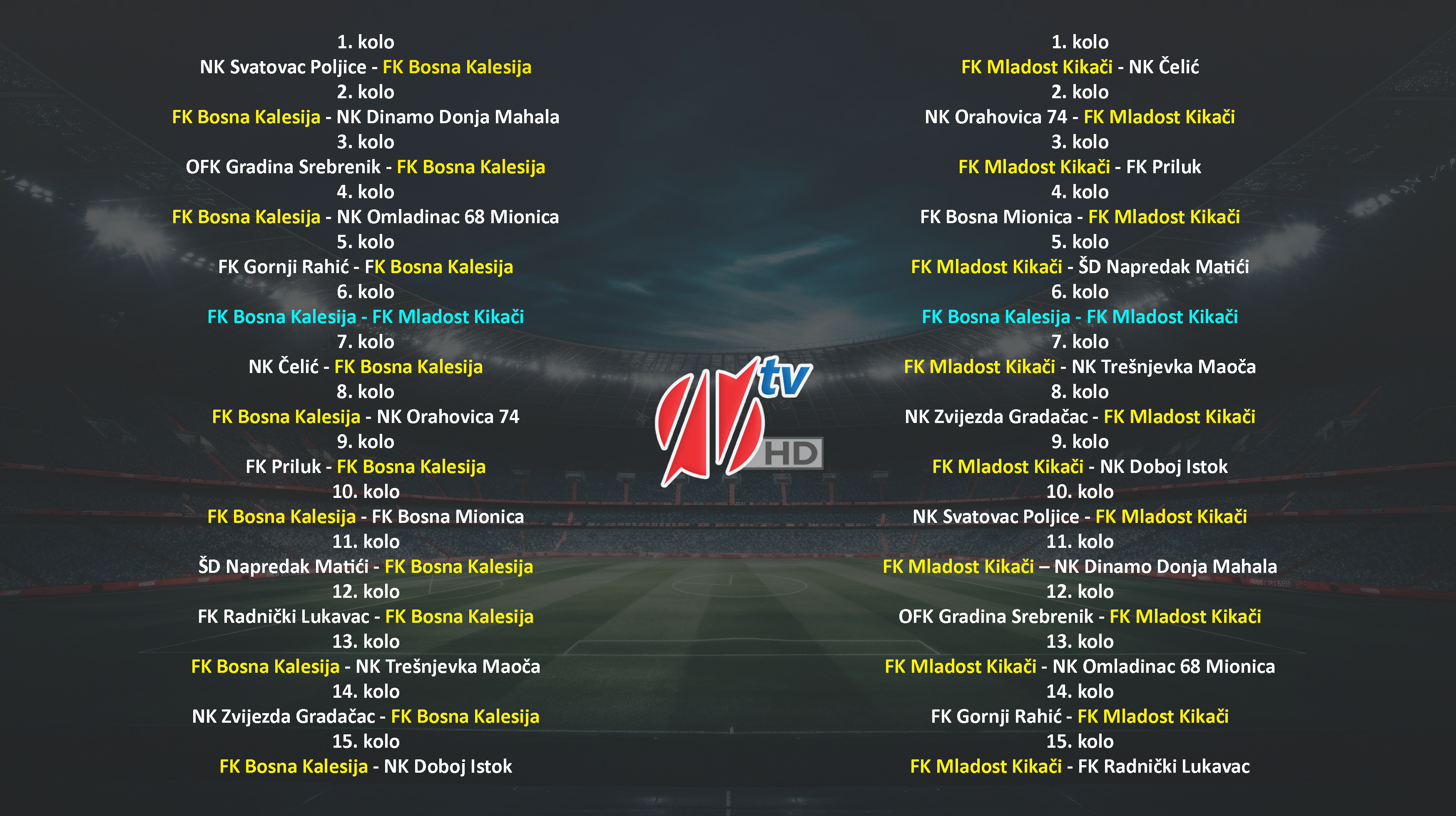 Žrijebom je odlučeno da će Bosna u prvom kolu gostovati kod ekipe Svatovca u Poljicu dok će Mladost dok će ekipa Mladosti u prvom kolu na Tom Cat Areni dočekati novajliju u ligi, ekipu Čelića je u prošloj sezoni osvojila titulu prvaka Prve lige TK.