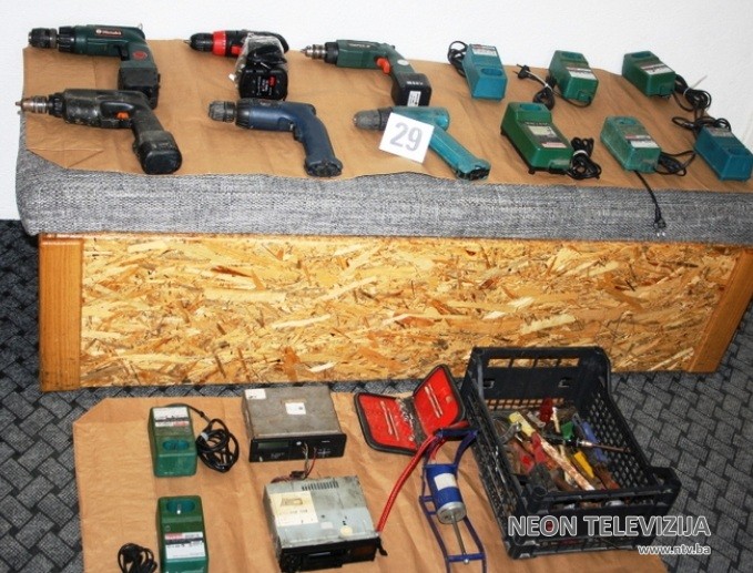 Prilikom pretresa, pronađeni su i privremeno oduzeti predmeti koji se dovode u vezu s izvršenjem krivičnih djela: 2 kombi vozila, 2 traktora, 3 automatske puške sa 188 kom. bojeve municije, vojnička puška, vazdušna puška, 215 bojevih metaka, lovačka puška, 7 okvira za automatsku pušku, pet pištolja, startni pištolj, gasni pištolj, 15 puščanih metaka, vojni bajonet sa futrolom, oko 200 komada pirotehničkih sredstava, razni električni alat, više mobilnih telefona, rudarske lampe, prenosni UKT uređaj, 2 laptopa, video kamera, biciklo, provalnički alat, 3 digitalne vage, predmeti za korištenje opojne droge, 15 pvc. pakovanja sa sadržajem materije koja svojim izgledom asocira na opojnu drogu, 7 pvc. pakovanja sa sadržajem bijele materije koja svojim izgledom asocira na opojnu drogu, 35 ručno motanih cigareta “jointa”, manja količina praškaste materije koja svojim izgledom asocira na opojnu drogu, šprica sa materijom koja svojim izgledom asocira na kanabisovo ulje, pvc. pakovanje sa sadržajem bijele praškaste materije koja svojim izgledom asocira na opojnu drogu, osušena biljna materija koja svojim izgledom asocira na opojnu drogu, 2 drobilice za opojnu drogu i drugi predmeti.