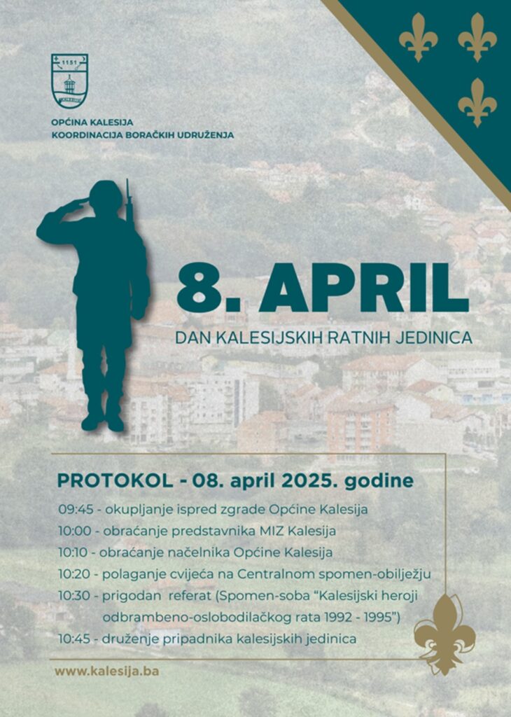 Organizacioni odbor za obilježavanje bitnih datuma i događaja za općinu Kalesija, sutra 08.aprila organizira obilježavanje Dana kalesijskih ratnih jedinica.