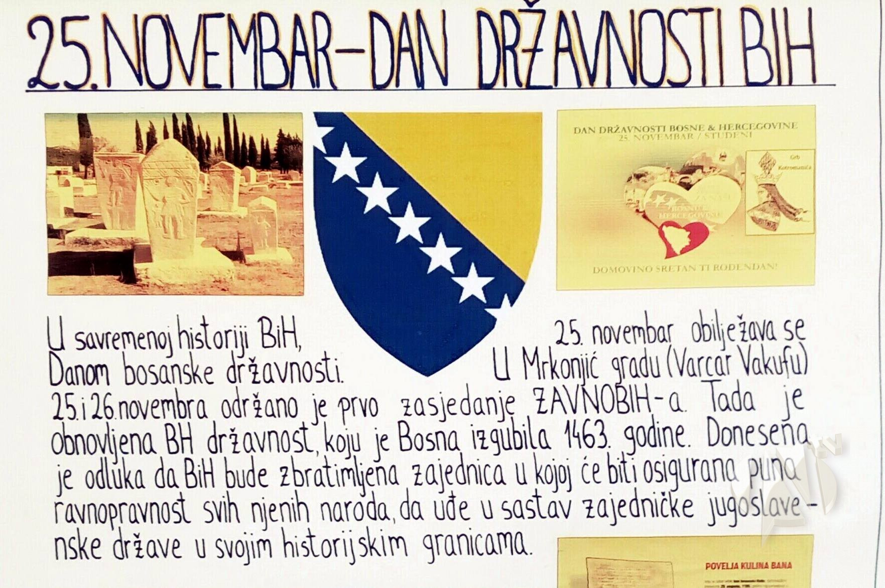 Povodom 25.novembra – Dana državnosti Bosne i Hercegovine u JUOŠ „Memići“ je organizovano niz aktivnosti s ciljem obilježavanja Dana državnosti BiH.