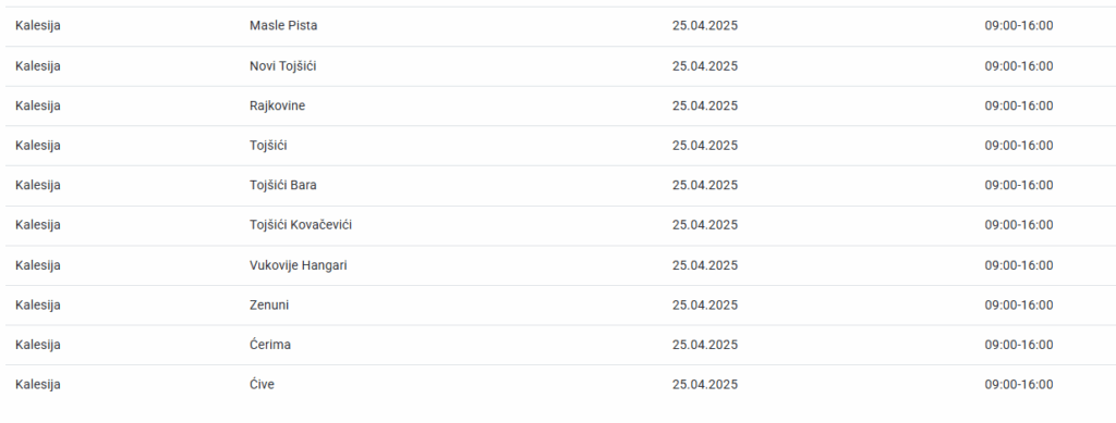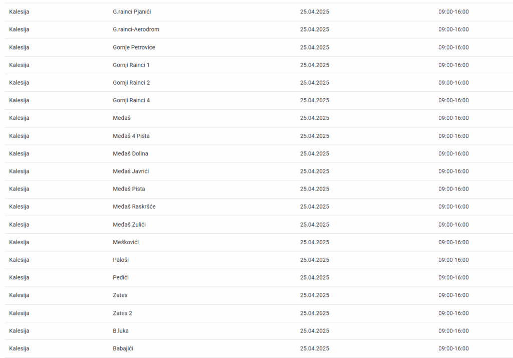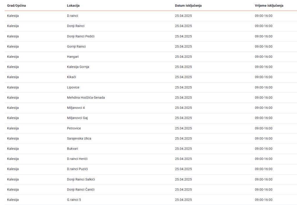 Veći dio područja općine Kalesija sutra (25. april, petak) će biti bez električne energije u periodu od 9 do 16 sati.