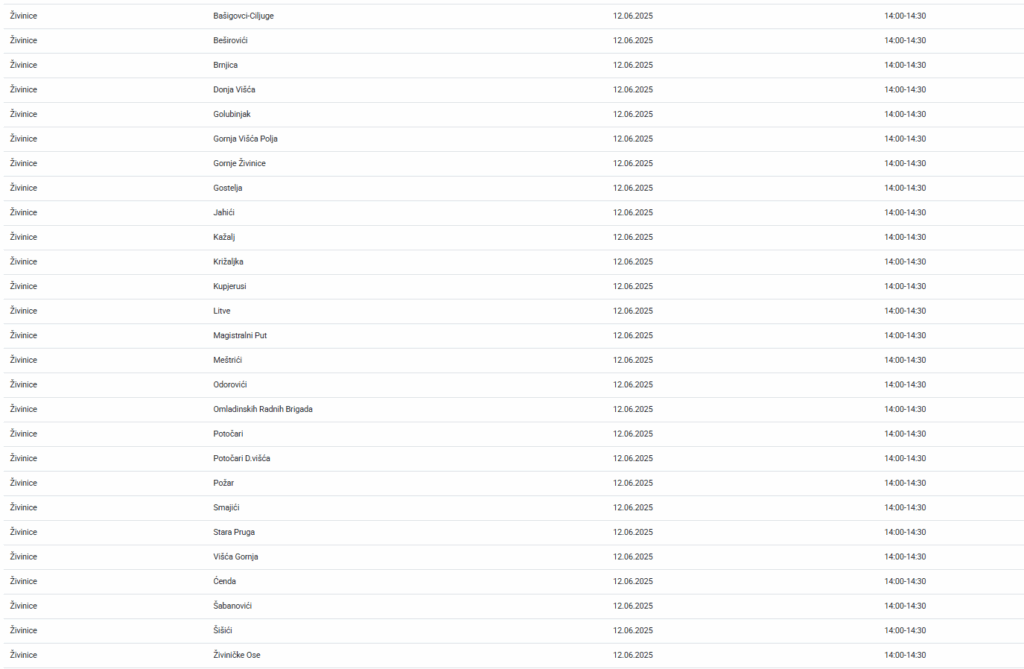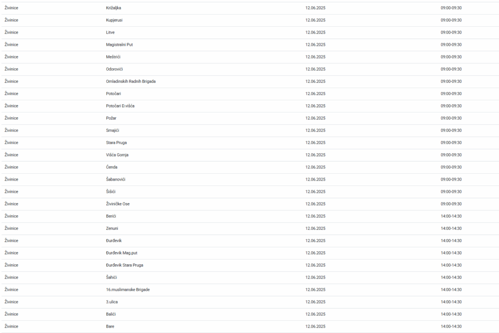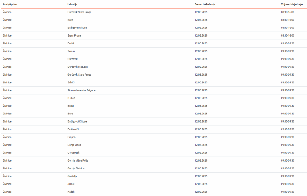 Veliki broj naselja na području Živinica danas će biti bez električne energije, najavljeno je iz Elektroprivrede Bosne i Hercegovine.