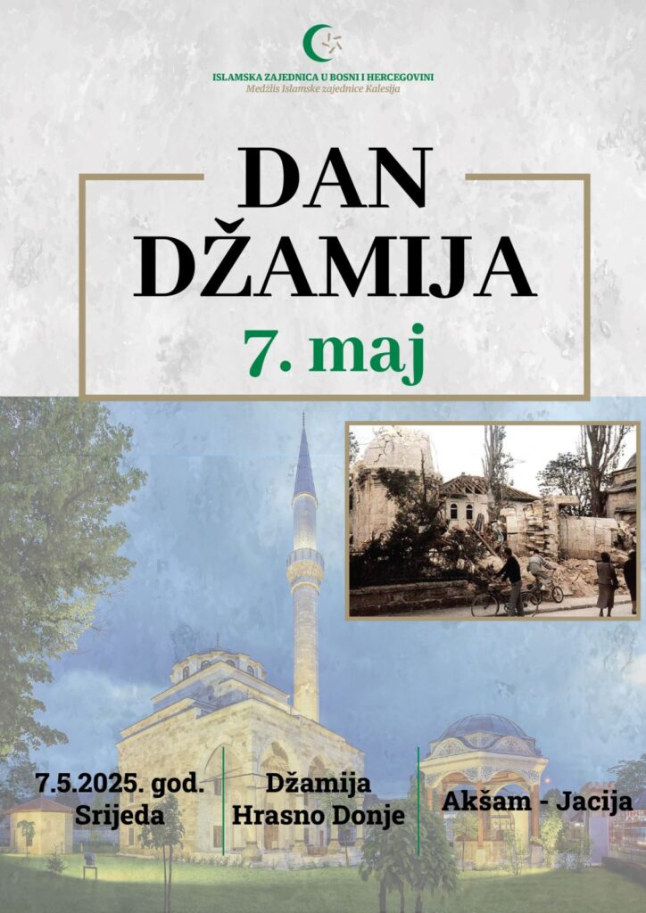 Večeras će u džematu Hrasno Donje (nova džamija), koji je domaćin obilježavanja Dana džamija za područje Medžlisa IZ Kalesija biti izveden prigodan vjerski program povodom Dana džamija. Vjerski program će se izvesti između akšama i jacije.