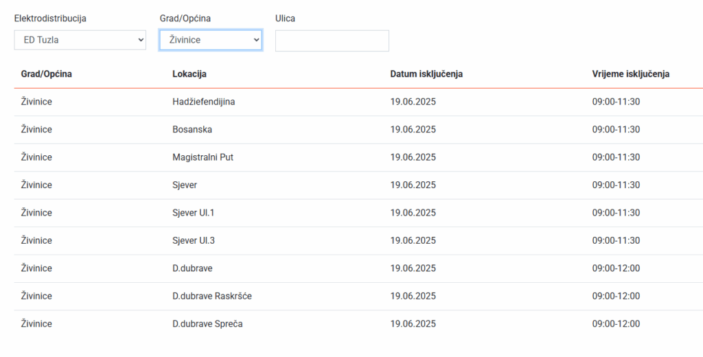 Za danas su iz Elektroprivrede Bosne i Hercegovine najavljeni kratkotrajni prekidi u snabdijevanju električnom energijom na području nekoliko živiničkih ulica i naselja.