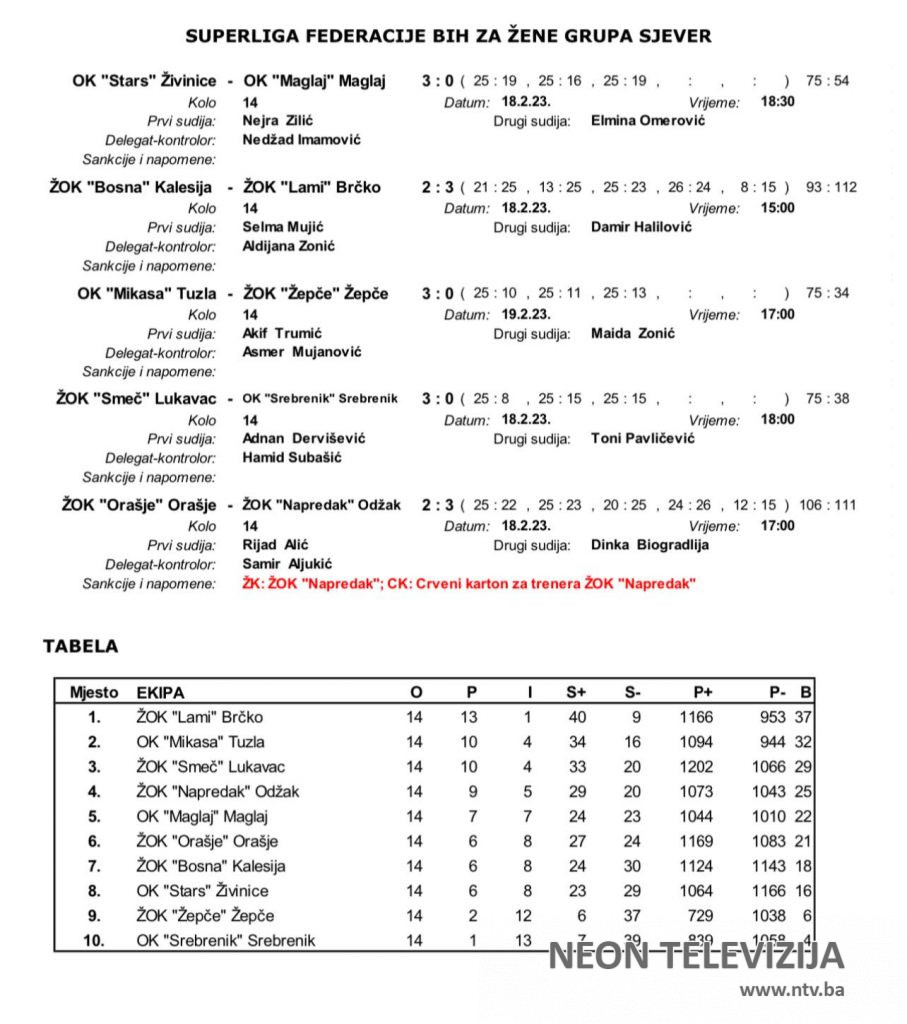 ŽOK “Bosna” Kalesija nalazi se na 7. mjestu sa osvojenih 18 bodova. Proteklog vikenda igrale su na domaćem terenu protiv lidera na tabeli ŽOK Lami Brčko, čija je ekipa slavila pobjedu.
