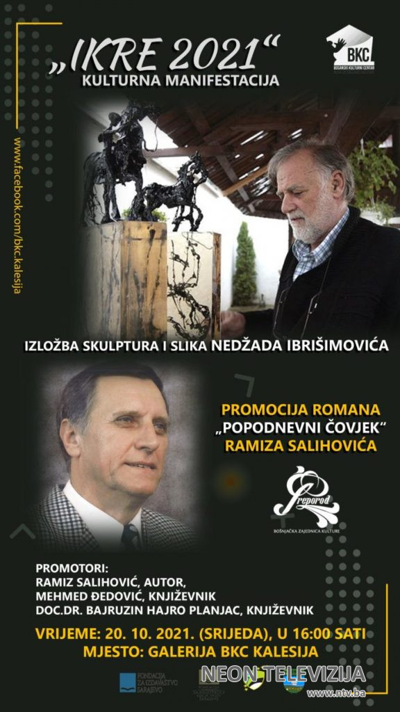 Za srijedu, sa početkom u 16,00 sati, predviđena su dva značajna kulturna događaja. Prvo će, povodom godišnjice rođenja Nedžada Ibrišimovića, velikana pisane riječi, biti otvorena Izložba skulptura i slika Nedžada Ibrišimovića, a odmah nakon toga bit će upriličena promocija romana „Popodnevni čovjek“ Ramiza Salihovića.