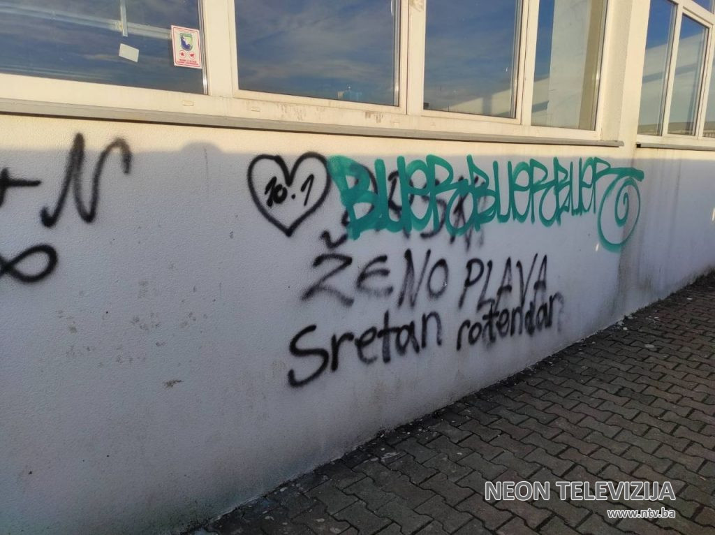 Naime, uposlenici i menadžment JU Mješovita srednja škola Kalesija su prvog radnog dana u 2022.godini po dolasku na posao bili neprijatno iznenađeni grafitima koje su zatekli na zidovima nove fasade na objektu kalesijske srednje škole.