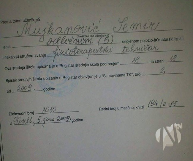 Ja Semir Mujkanović sam 2009.godine završio Medicinsku školu u Tuzli (fizioterapijski tehničar), a zatim 2013.godine završio sam Visoku zdravstvenu školu smijer fizioterapija. Odmah po završetku srednje škole prijavljen sam na evidenciju Zavoda za zapošljavanje, a studij Visoke zdravstvene škole sam sebi sam finansirao od sredstava roditelja.