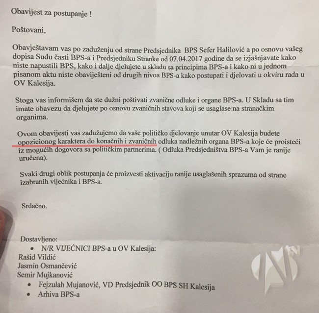 Ja nikada neću glasati protiv interesa građana Kalesije, kako to od mene traži upravo Mirsad Selimović i vršilac dužnosti predsjednika BPS-a u Kalesiji Fejzulah Mujanović. Mene su birali građani da ih predstavljam da bude bolje njima i našoj Kalesiji i tako ću se i ponašati.