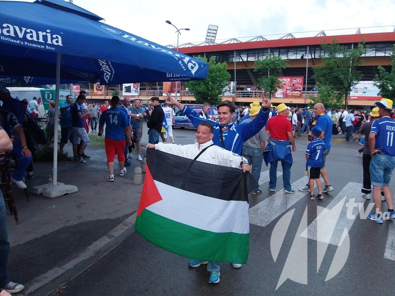 Navijači naše nogometne momčadi koja je sinoć slavila protiv Izraela u Zenici i prije samog početka utakmice odlično su se zabavljali na ulicama Zenice. Palestinske zastave, ljiljanke, ali i državne viorile su se na svakom koraku.