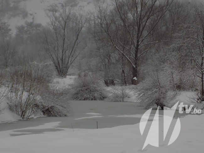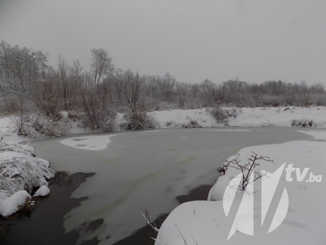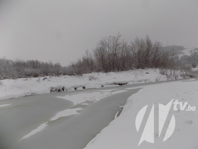 Rijeka Spreča nedaleko od mosta Sead Džafić ispod Visa u potpunosti je danas prekrivena ledenim slojem.