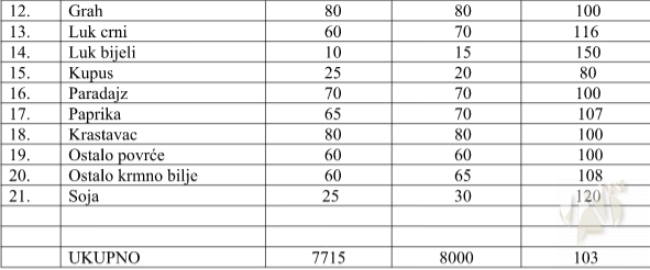 na tržištu. Osnov za izradu ovogodišnjeg plana predstavljaju podaci prijava planirane poljoprivredne proizvodnje putem upisa u registar poljoprivrednih gazdinstava,kao i statistički podaci o uobičajenoj sjetvi na
