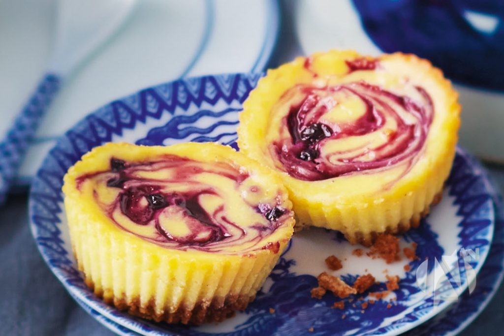 Zagrijte vašu rernu na 160 stepeni, a za to vrijeme kalup za pečenje obložite papirnim korpicama. Kašikom dobro izmješajte keks i otopljeni puter, a potom svaku korpicu napunite smjesom i dobro pritisnite. Na drugoj strani, dobro izmiksajte krem sir i šećer, a kada se smjesa sjedini i postane u potpunosti kremasta, dodajte jedno po jedno jaje, miksajući konstantno dok se ne sjedine u smjesu. Na kraju, umiksajte kiselo vrhnje. Dobijenu smjesu, sipajte na podlogu od keksa, i skoro do vrha korpice. Na kraju, na sami vrh popunjene korpice, dodajte vaše omiljeno voće po želji i potom pleh sa korpicama pecite u rerni narednih 30 minuta.