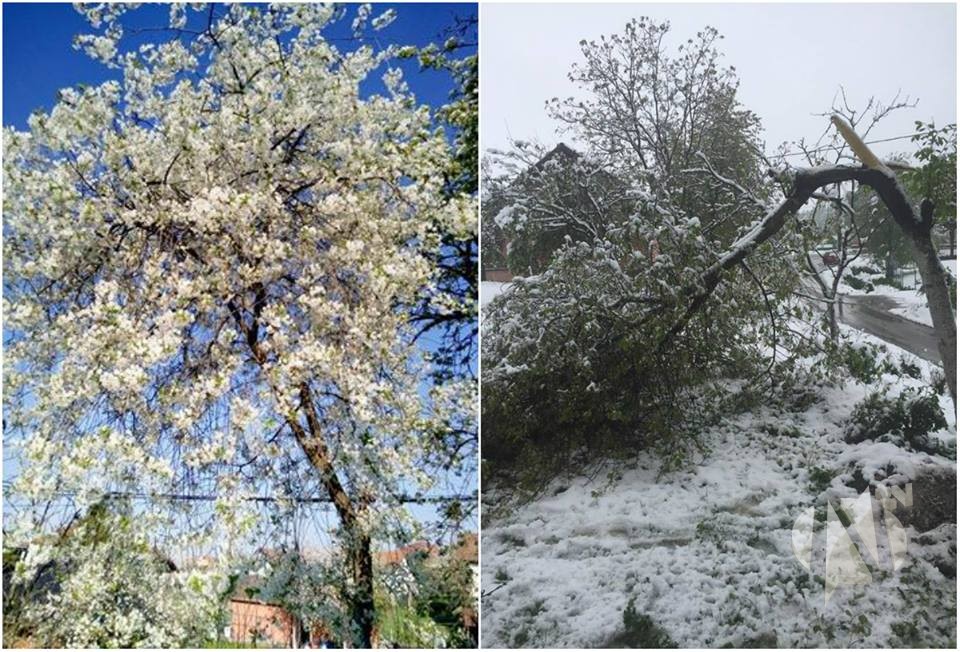 Već nekoliko dana najavljuju nevrijeme. Kažu: mraz, kiša i snijeg. Neki ljudi sa rezervom to prihvatiše, a neki se, Boga mi, zabrinuše za svoje voće i povrće. Ovi drugi su bili i u brizi i u pravu. Jutros je, u sred proljeća, snijeg pao. Težak i mokar. Plaču zaprepaštene bašte. Vidim, kroz okna kućanska, zabrinuta prolaze lica. I nijema.