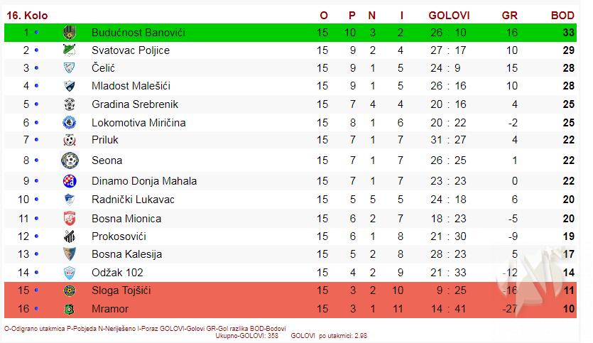 Podsjećanja radi, “Bosna” se nalazi na 13.mjestu sa 17 osvojenih bodova, “Sloga” zauzima 15.mjesto sa 11 osvojenih bodova.