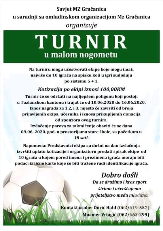Malonogometni, noćni turnir u MZ Gračanica počinje u srijedu, 10. juna 2020. godine i traje 7 noći.