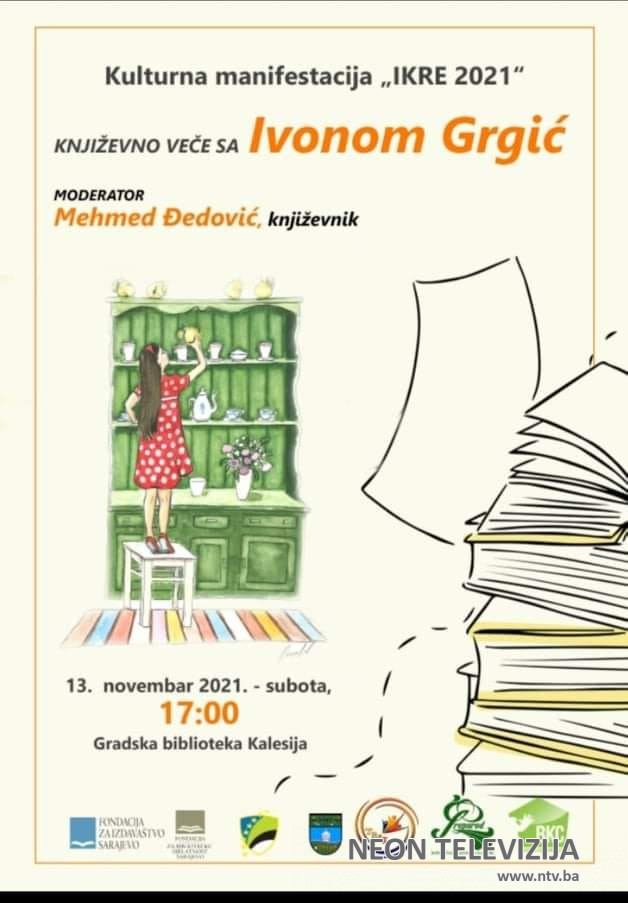 U okviru manifestacije “Ikre 2021” u organizaciji JU BKC “Alija Izetbegović” Kalesija će biti upriličeno književno veče sa Ivonom Grgić. Moderator je kalesijski pisac Mehmed Đedović. Suorganizator Udruženje mladih “TRIK”