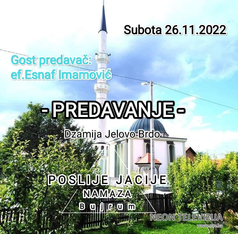 U subotu, 26. novembra 2022. godine, nakon jacije namaza, održat će se prvo predavanje.