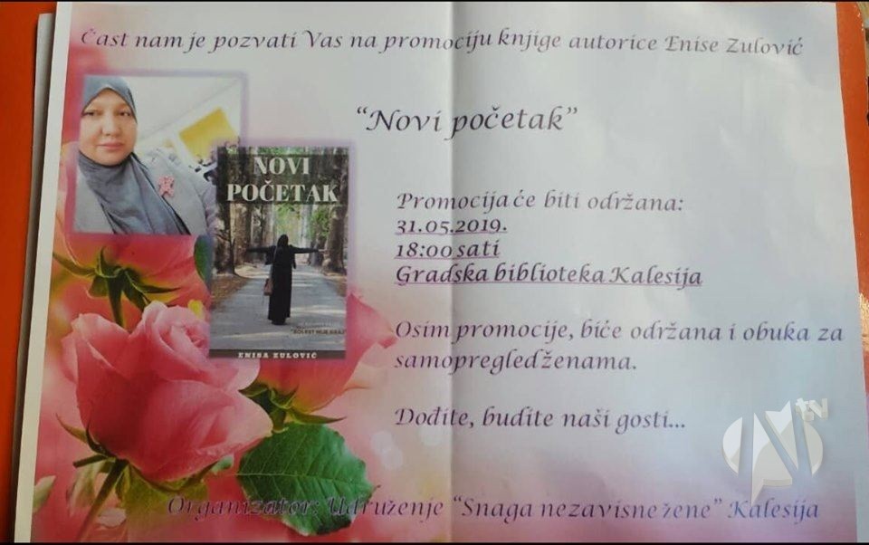 Udruženje “Snaga nezavisne žene” Kalesija u petak, 31. maja 2019. godine organizuje promociju knjige “Novi početak”, autorice Enise Zulović.