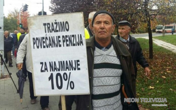 Penzioneri/umirovljenici u Tuzli su apsolutno nezadovoljni prosječnim penzijama od 428 maraka i relativno su najniže u Europi. Od 430 hiljada penzionera u F BiH, oko 260.000 ima minimalna primanja od 328 maraka. To je četiri puta manji iznos samo od paušala koje prima većina profesionalnih poslanika, iako imaju relativno najveća primanja u Europi. Nakon što su vlastodršci pred kraj godine povećali plate većini budzetskih korisnika i poslanicima, od 10 posto, prosječne penzije za januar biće manje od 40 posto prosječne plate. Umjesto povećanja penzija, vlast manipuliše penzionerima, najavljujući „značajno“ povećanje penzija u izbornoj godini- navodi se u saopćenju za javnost Stranke penzionera/umirovljenika BiH GO Tuzla.