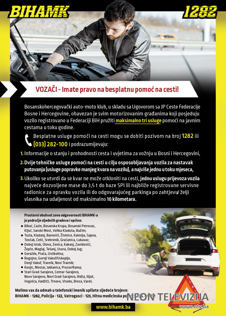 BIHAMK: VOZAČI – Imate pravo na besplatnu pomoć na cesti