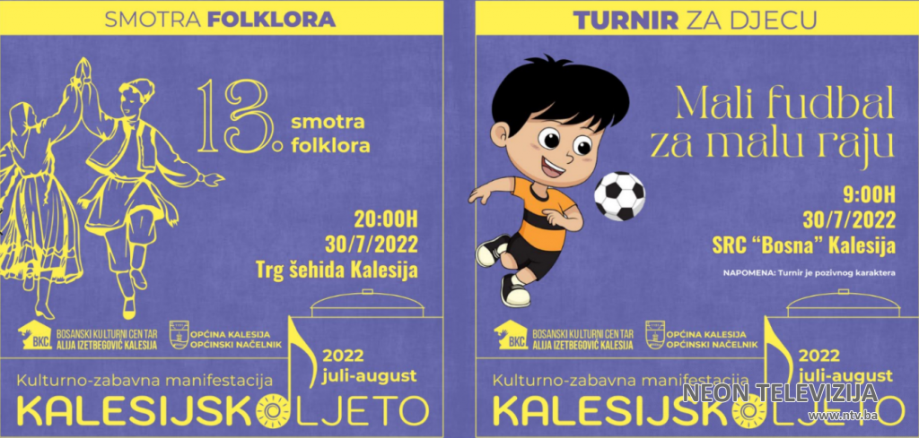 Kulturno-zabavna manifestacija „Kalesijsko ljeto 2022“ nastavlja se u subotu, 30. 07. 2022. godine, bogatim kulturno-zabavnim i sportskim sadržajima.