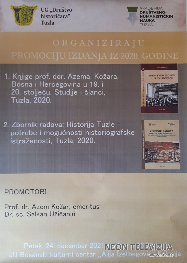 Publici će biti predstavljene dvije knjige prof. dr. Azema Kožara “Bosna i Hercegovina u 19. i 20. stoljeću” i “Studije i članci”, te Zbornik radova: Historija Tuzle – potrebe i mogućnosti istraženosti”.