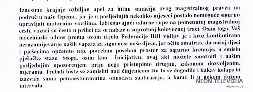 -Da JP Ceste Federacije sanira dijelove puta magistralnog puta M4 koja prolazi teritorijom općine Kalesija koji je u katastrofalnom stanju, te napokon pristupe izgradnji pješačke staze pored istog.