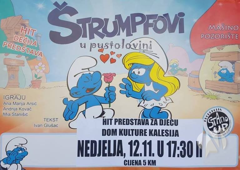 U nedjelju, 12. novembra, sa početkom u 17:30 sati, u kalesijskom BKC-u bit će izvedena hit predstava za djecu „Štrumpfovi u pustolovini“.