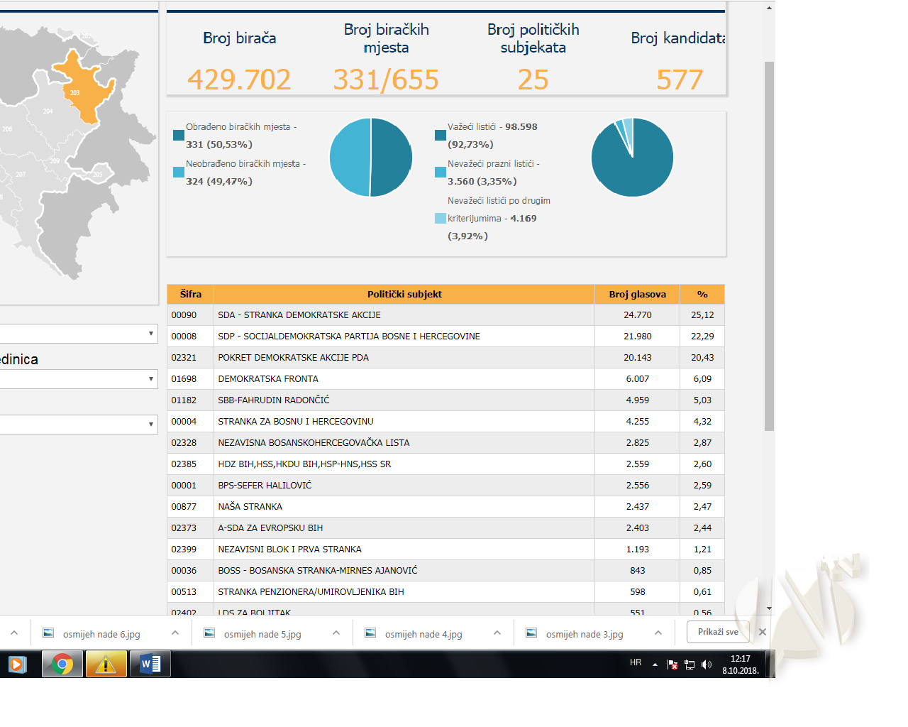U nastavku pogledajte koliko glasova su dobili neki od kandidata za Skupštinu TK.
