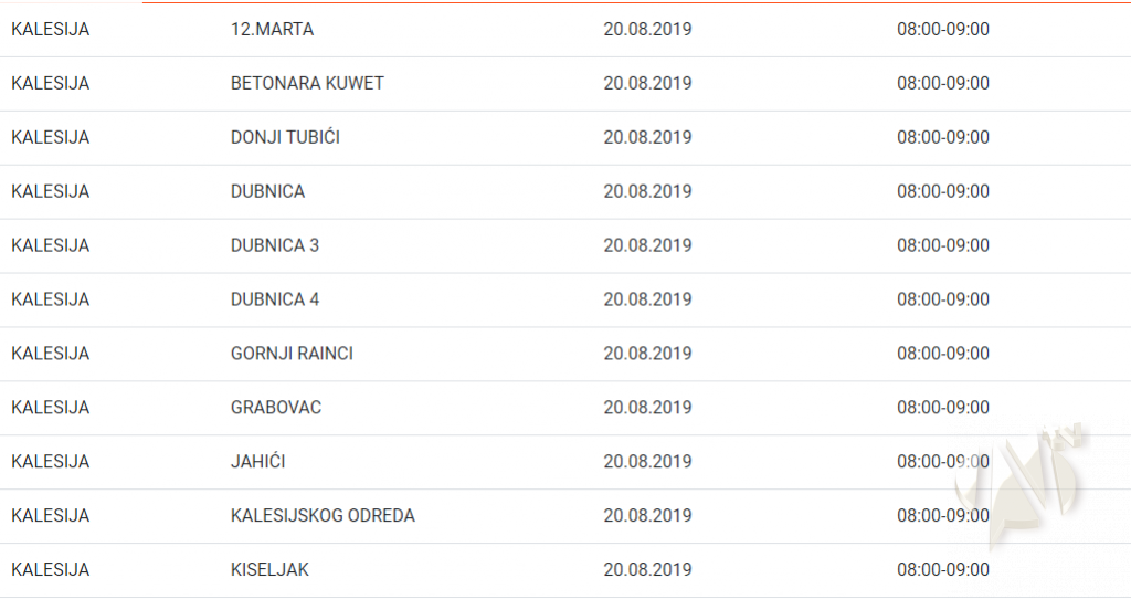 Bez struje će u utorak 20. avgusta, 2019. godine, u periodu od 08 do 09, od 08 do 16 i od 15 do 16 sati biti sljedeća naselja i ulice: