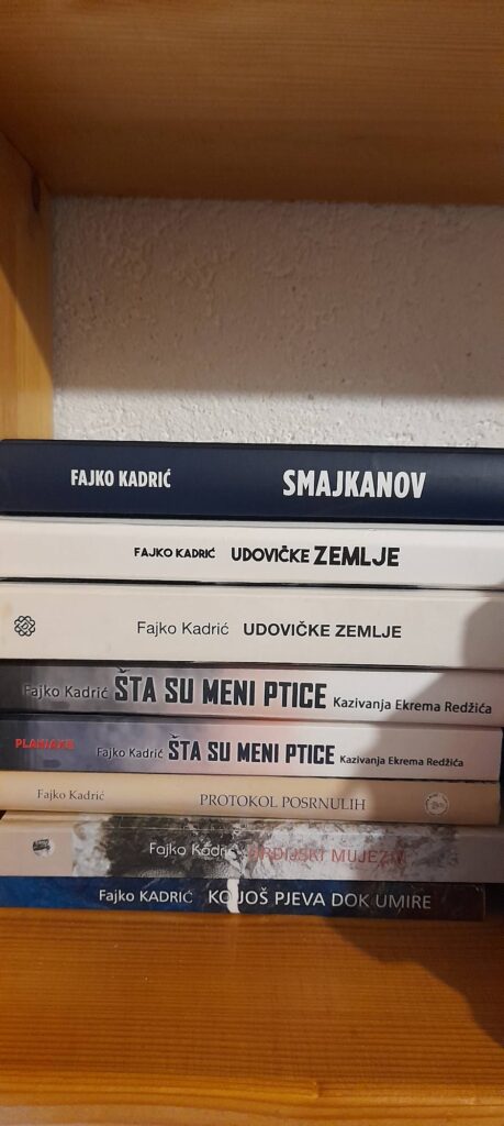 Pojava Fajke Kadrića na bosanskohercegovačkom književnom nebu je, po mnogo čemu, izuzetna, kaže profesor Hamzić. Započeo je knjigama pripovijedaka “Ko još pjeva dok umire” i “Ordijski mujezin” a nastavio sa tri romana “Protokol posrnulih”, “Udovičke zemlje” i “Šta su meni ptice”. Ako je s pričama i prva dva romana stekao značajno mjesto u bosanskohercegovačkoj književnosti, roman “Šta su meni ptice” etablirao ga je kao regionalnu književnu činjenicu.