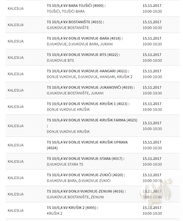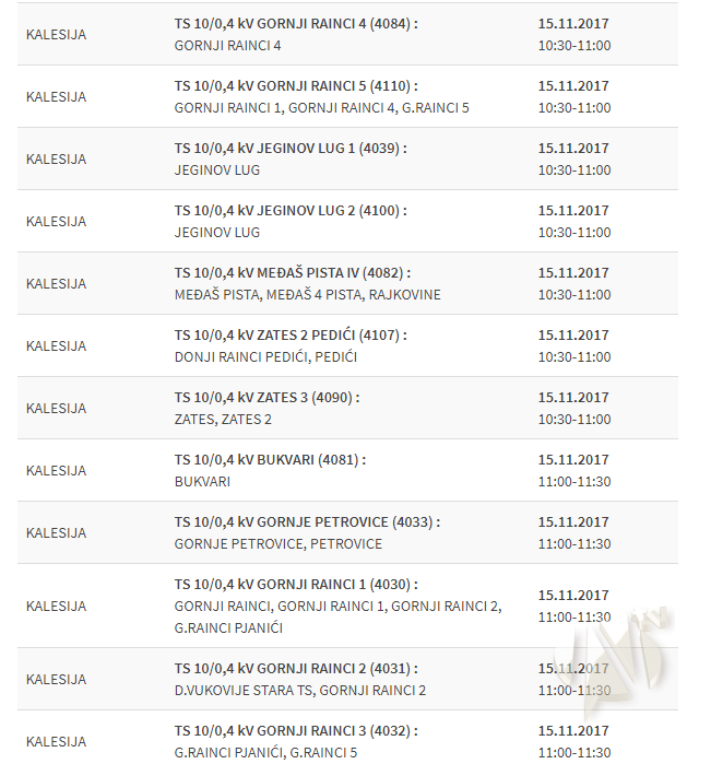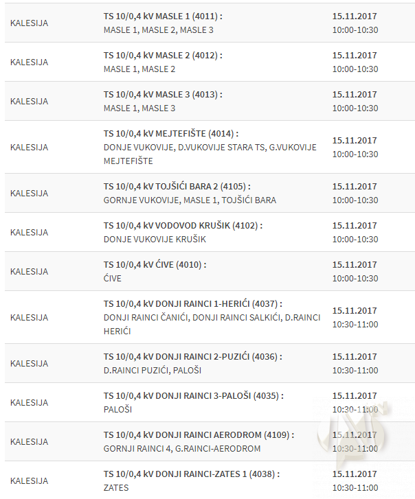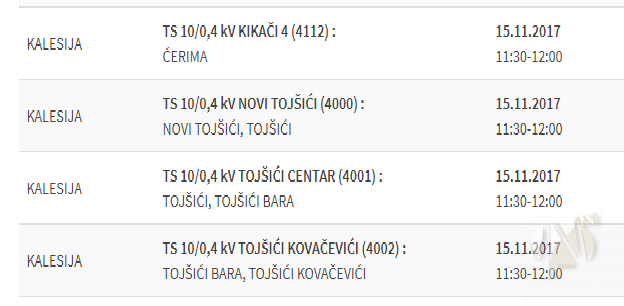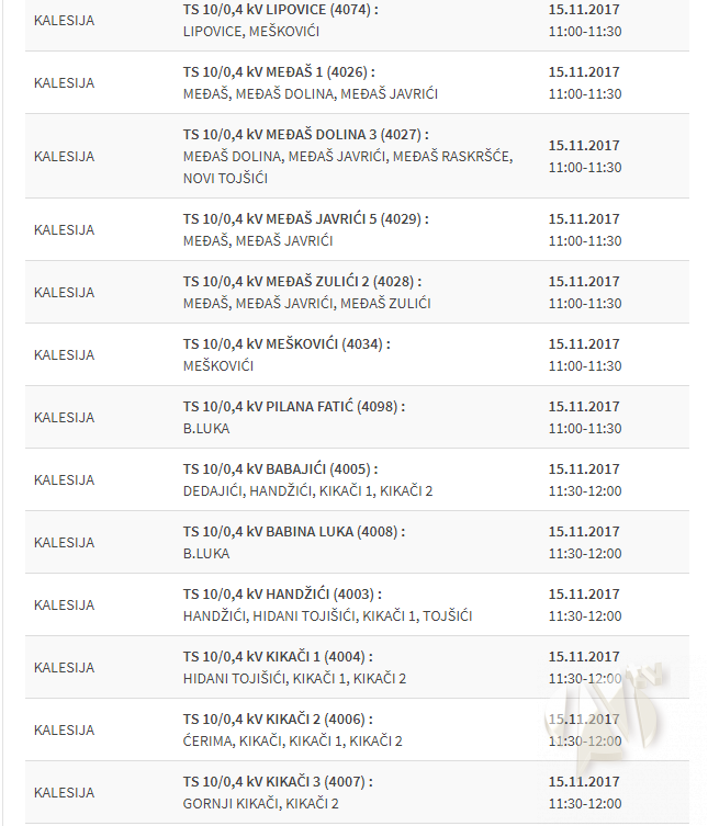 Do prekida u snabdijevanju električnom energijom doći će u naseljima: