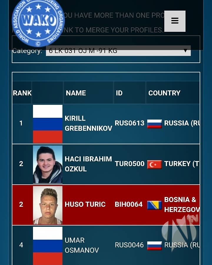 Bronza na Svjetskom prvenstvu Italiji  Huse Turića obradovala je sve Kalesijce. Priželjkivali smo zlato, međutim Rus je slavio u polufinalnom meču, te se naš bokser našao na trećem itekako dobrom mjestu. Danas smo dobili priznanje koje sjaji skoro pa bolje od zlata na pomenutom takmičenju. Na rang listi (WAKO RANKING)  Huso Turić iz Prnjavora dijeli drugo mjesto sa predstavnikom Turske.