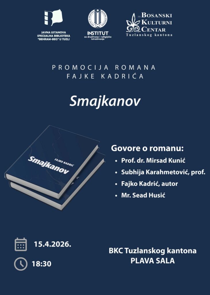 U srijedu 15. aprila 2026. godine u 18:30 sati bit će upriličena promocija romana ”Smajkanov” autora Fajke Kadrića.