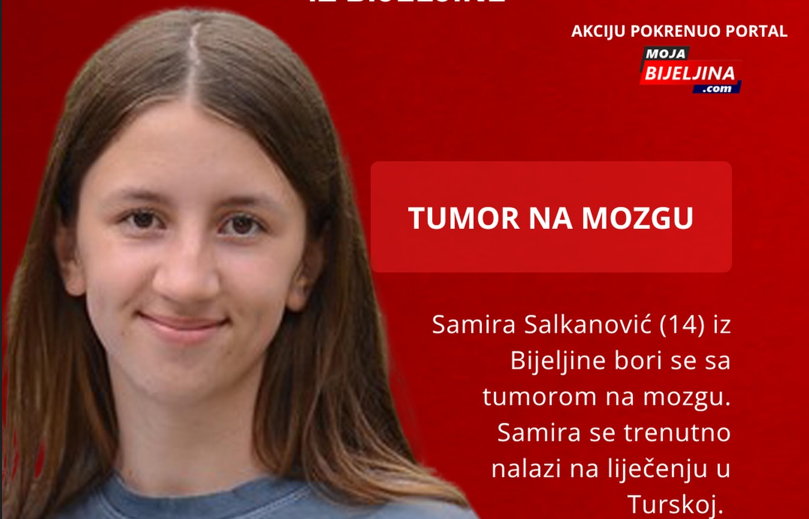 Četrnaestogodišnja Samira Salkanović iz Bijeljine, učenica osmog razreda Osnovne škole „Jovan Dučić“, vodi najtežu životnu bitku. Ova hrabra djevojčica suočila se sa teškom dijagnozom – tumorom na mozgu, zbog čega se trenutno nalazi na liječenju.