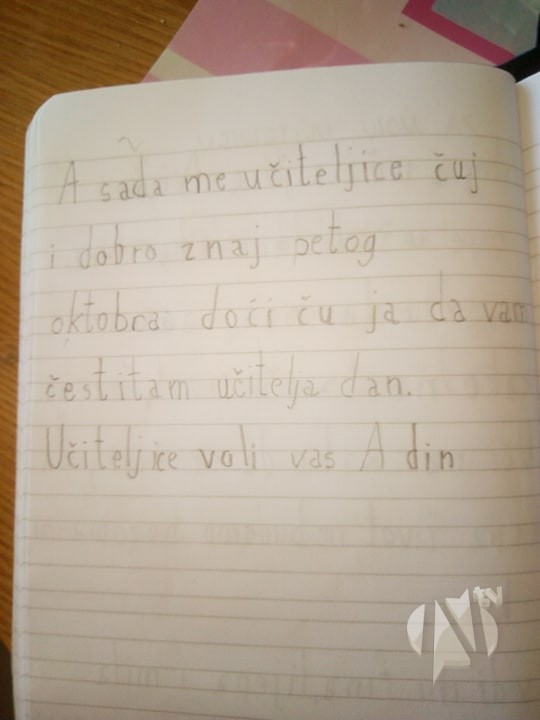 “Mnogo sam poželio svoju učiteljicu, pa sam joj napisao pismo. Draga moja učiteljice jedva čekam da krenemo u školu da budemo zdravi, sretni i nasmijani. Voli vas vaš Adin”