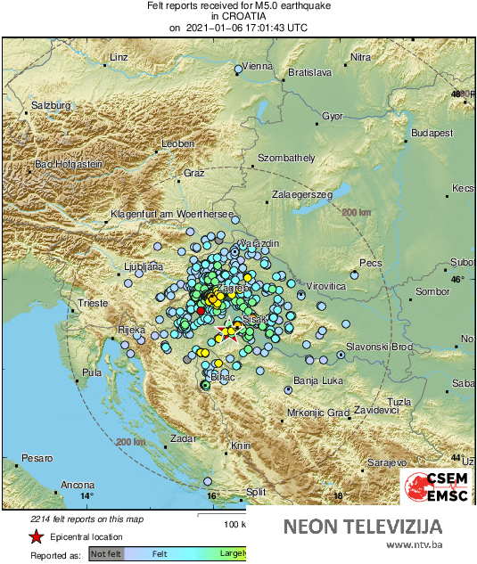 EMSC javlja da je bio magnitude 5 po Richteru. Epicentar je, prema prvim podacima, bio oko 45 kilometara jugoistočno od Zagreba, na području Petrinje.
